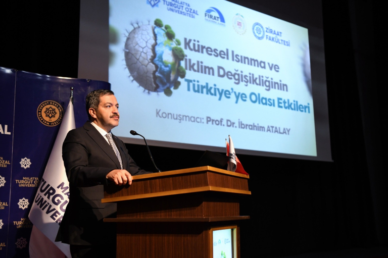Malatya Turgut Özal Üniversitesinde “Küresel Isınma ve İklim Değişikliğinin Türkiye’ye Olası Etkileri” konulu seminer düzenlendi. Seminer, Malatya Turgut Özal Üniversitesi Rektörü Prof. Dr. Recep Bentli, Rektör Yardımcısı Prof. Dr. Orhan Gündüz, Ziraat Fakültesi Dekanı Prof. Dr. Hakan Yıldırım, Ticaret Borsası Yönetim Kurulu Başkanı Ramazan Özcan, Fırat Kalkınma Ajansı Yatırım Destek Ofisi Birim Koordinatörü İsa Telimen, Malatya Büyükşehir Belediyesi Çevre Koruma ve Kontrol Daire Başkan Vekili Osman Engin, Ziraat Mühendisleri Odası Müdür Yardımcısı Ekrem Öztürk, Battalgazi İlçe Müftüsü Dr. Hüseyin Vuruşkan, çok sayıda akademik ve idari personel ile öğrencilerin katılımıyla gerçekleştirildi.